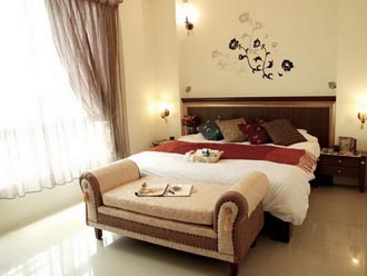 典雅尊爵雙人套房,加大的空間,特別裝潢的貝殼漆牆和大片落地窗,成為本房型最特別的吸引點,視野極佳。