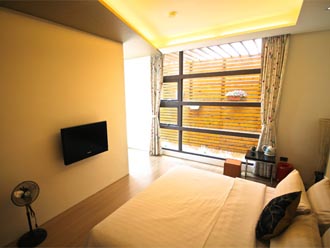 設備 :個人盥洗用具、液晶電視、冰箱、羽絨被、乾濕分離浴室、 落地窗陽台、寬頻上網(請自備筆記型電腦)
