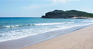 山水沙灘以細緻潔白的砂質著稱,景緻優美。沿著海岸線鄰近的嵵裡沙灘海水浴場由珊瑚及貝殼碎片所組成,海水清淺,細沙平軟,適合戲水遊玩。